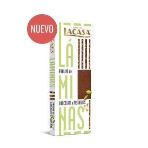Desde ahora, será LAMINERO toque aquel a quien le chiflen las Láminas de Praliné de Chocolate con Pistachos de Lacasa.
