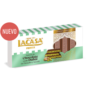 5,99 €Este manjar, mezcla de lujo y tradición, surge de la combinación de sabores de Oriente Medio y chocolate de primera calidad, a base de cremoso relleno de pistacho y crujientes hilos de masa hojaldrada. ¡Turrón que te cautivará por su textura y repetirás por su sabor!