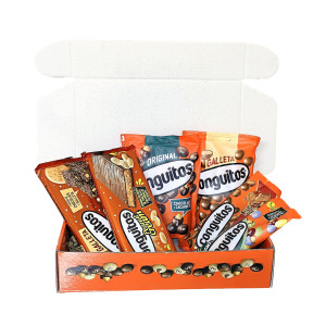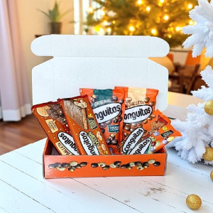 Caja regalo Conguitos con 1 bolsa de Conguitos Galleta leche, 1 bolsa de Conguitos Original, 1 bolsa de Conguitos Plant Based de 70g, 1 bolsa de Conguitos Speculoos 45g y 2 turrones Conguitos a elegir.