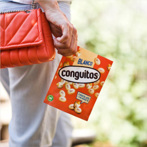 Chocolate blanco (50%) (azúcar, manteca de cacao, LECHE entera en polvo, LECHE desnatada en polvo, LACTOSA (LECHE), emulgente (lecitina de girasol) y aromas), CACAHUETE tostado (32%), azúcar, jarabe de glucosa, agentes de recubrimiento (E-414, E-904), colorante (E-172).