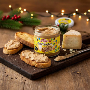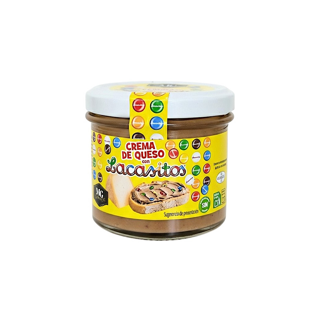 Descubre una crema de queso diferente y sorprendente: una combinación de queso elaborado con leche cruda de vaca, cabra y oveja mezclado con Lacasitos, que aportan un punto dulce y divertido. Su textura es suave y fundente, con un contraste muy apetecible entre el sabor lácteo del queso y el toque del chocolate.
