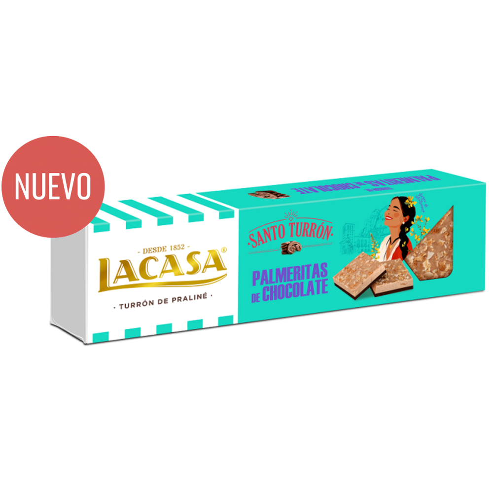 TURRÓN DE PRALINÉ DE CHOCOLATE CON PALMERAS. TURRÓN DIVERSO. CALIDAD SUPREMA.