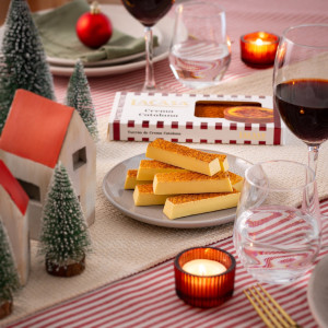 Nuestro Praliné de Crema Catalana. Todo el sabor del tradicional postre en un exquisito praliné de crema bañado por una rica y crujiente capa de azúcar quemado.