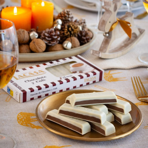 Exquisito praliné de almendras y avellanas elaborado con cacao y café puro.