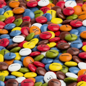GRAGEA DE CHOCOLATE CON LECHE RECUBIERTA CON AZÚCAR COLOREADO