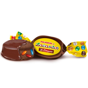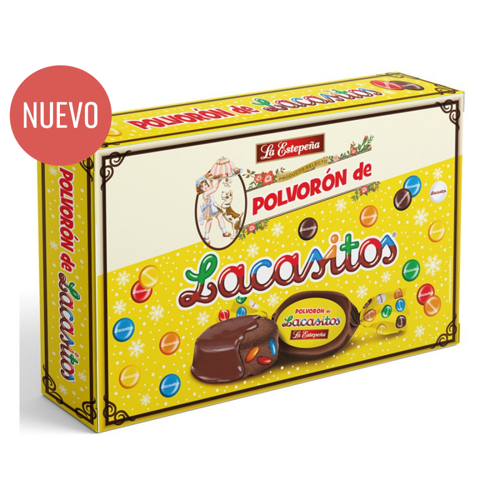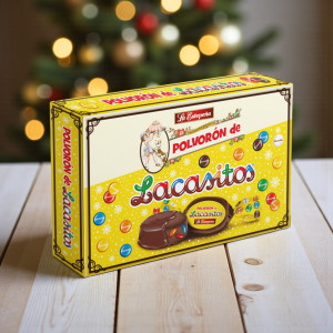 Disfruta de la perfecta combinación del tradicional polvorón con cacao, con un interior de auténticos Lacasitos y un irresistible baño de chocolate con leche. Un capricho que une la artesanía de siempre con el toque más colorido y alegre de la Navidad.